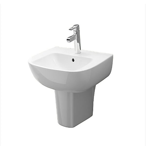 Vẫn là chất liệu sứ vệ sinh cao cấp gam màu trắng nhã nhặn, điểm khác biệt của các mẫu sản phẩm thuộc BST này là kiểu dáng và đường nét. Phần chân dài nối liền mặt sàn với chậu rửa như một bệ đỡ vững chãi giúp ngăn chặn giọt bắn, bảo đảm vệ sinh cho khu vực xung quanh.