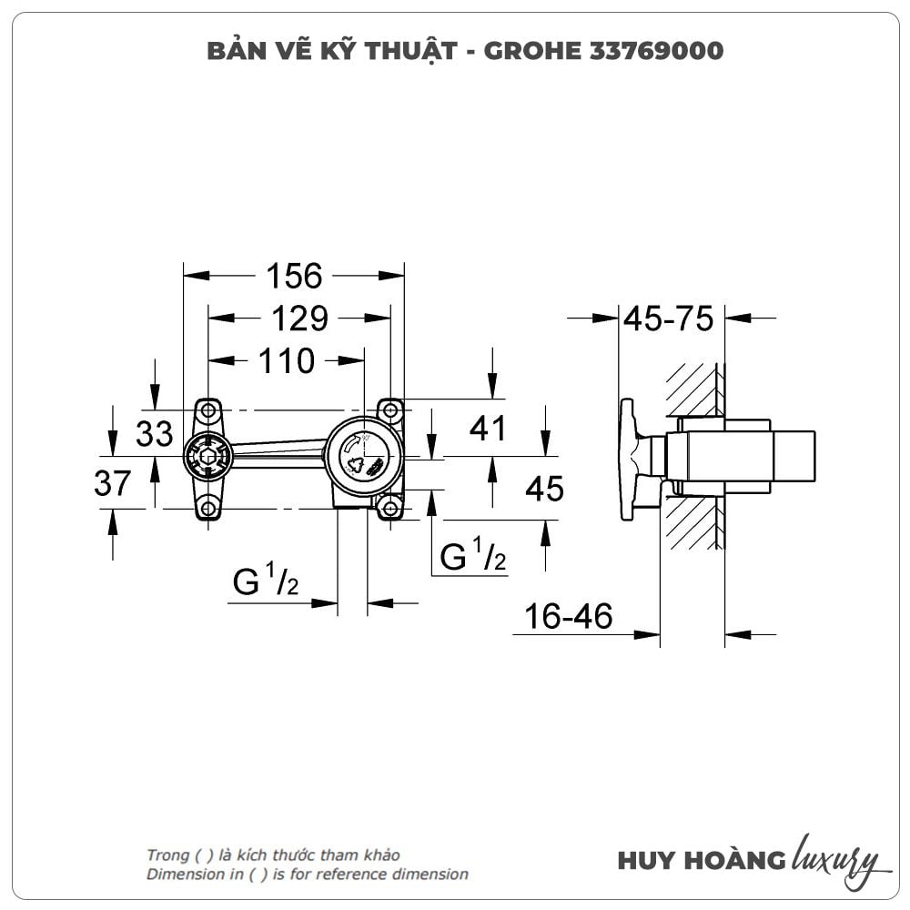 Thông tin sản phẩm: Bộ trộn âm vòi lavabo âm tường GROHE 33769000