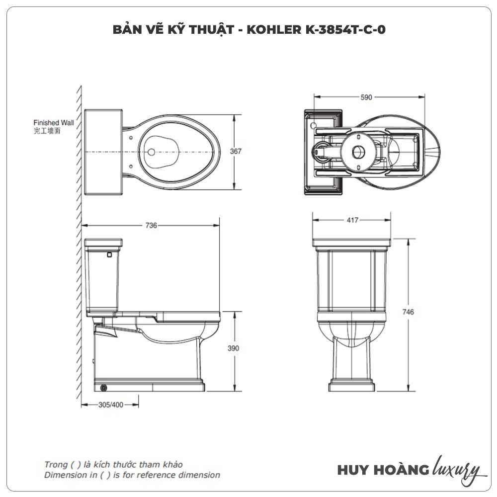 - Tâm thoát sàn: 305mm