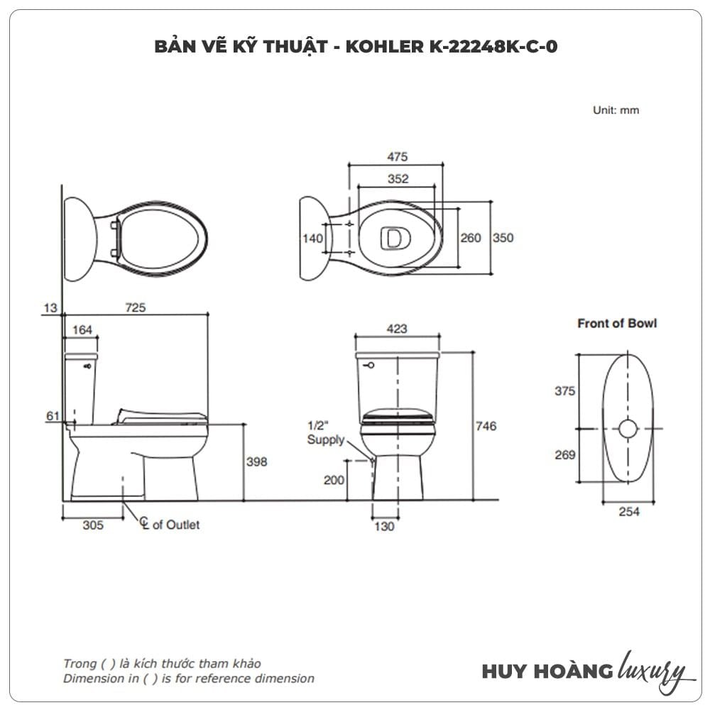 Thông tin sản phẩm: Bồn cầu KOHLER 2 khối K-22248K-C-0