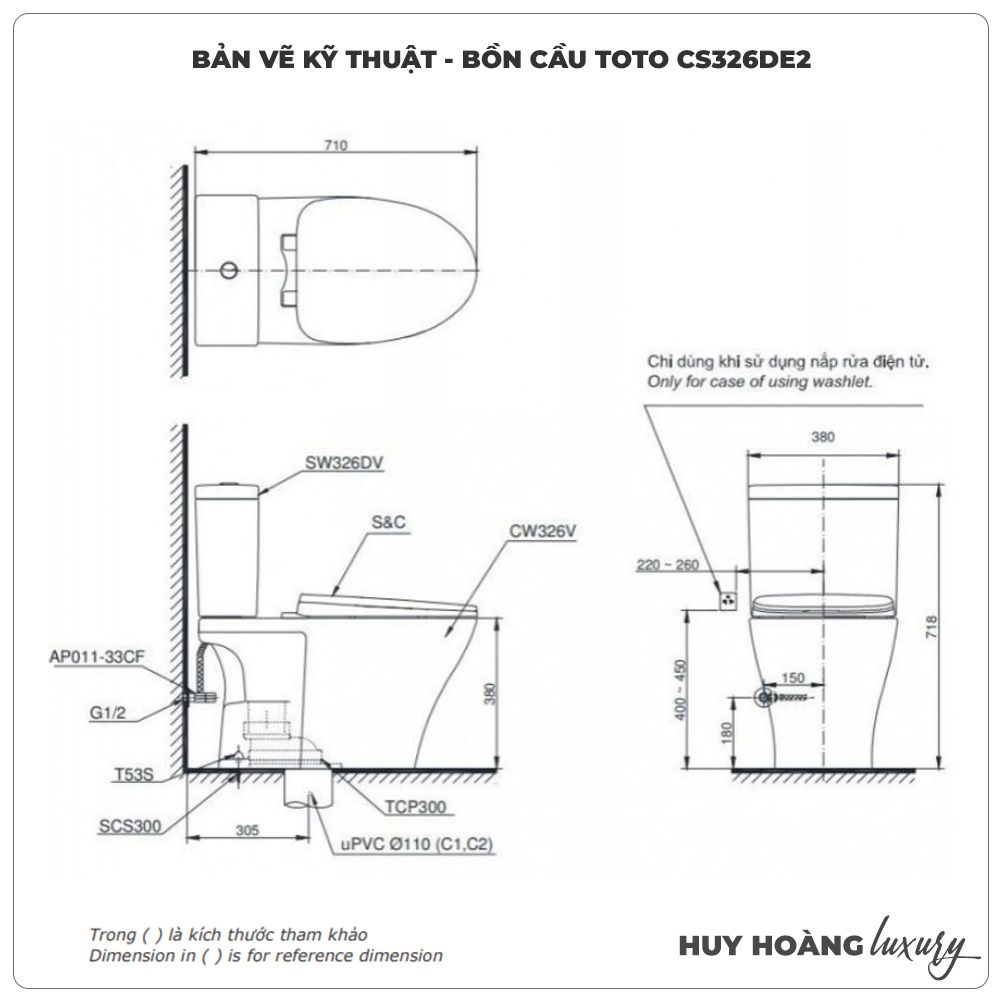 Thông tin sản phẩm: Bồn cầu nắp rửa cơ TOTO CS326DE2 (Nắp TCW1211A)