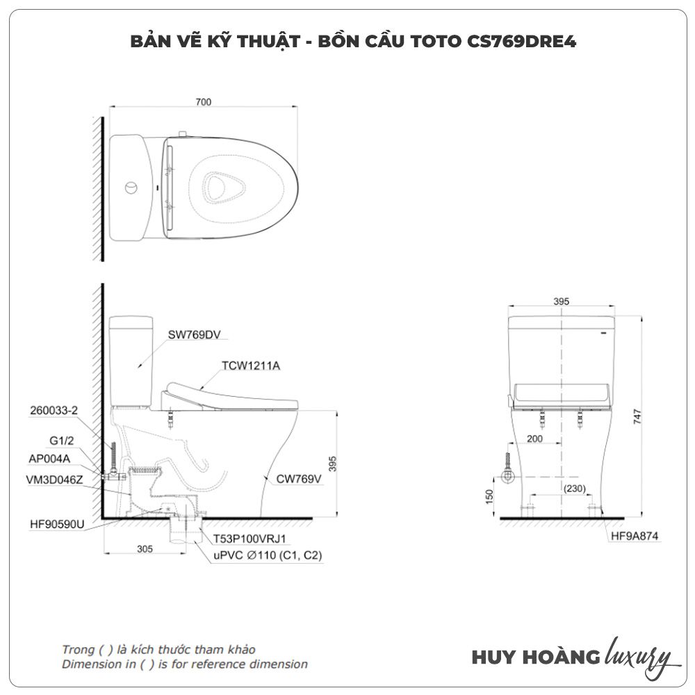 - Bồn cầu nắp rửa cơ TOTO CS769DRE4 (Nắp TCW1211A) được đóng gói hoàn thiện với tem dán chính hãng từ thương hiệu, phiếu bảo hành và phiếu thông tin.