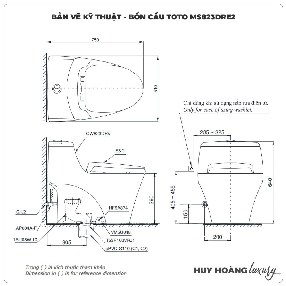 Thông tin sản phẩm: Bồn cầu nắp rửa cơ TOTO MS823DRE2 (Nắp TCW1211A)
