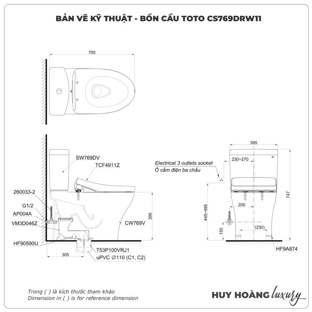 | Kết cấu | Thân cầu: C769 Không giấu dây Két nước: S769DR Nắp rửa điện tử: TCF4911Z |