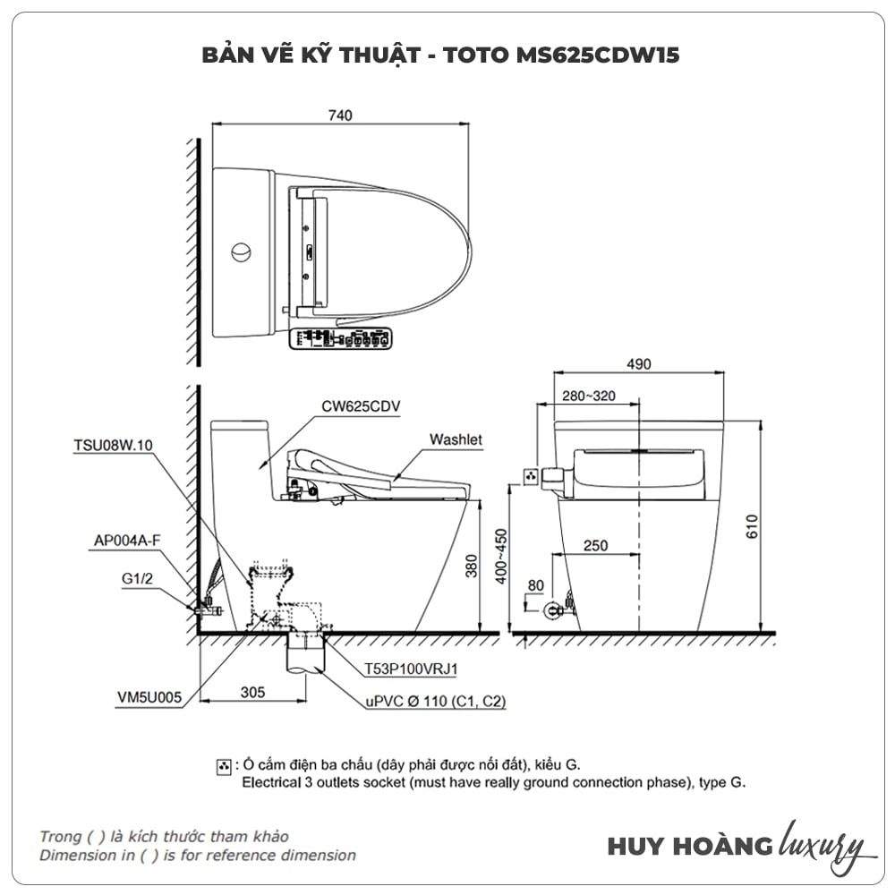 Thông số kỹ thuật: Bồn cầu thông minh TOTO MS625CDW15
