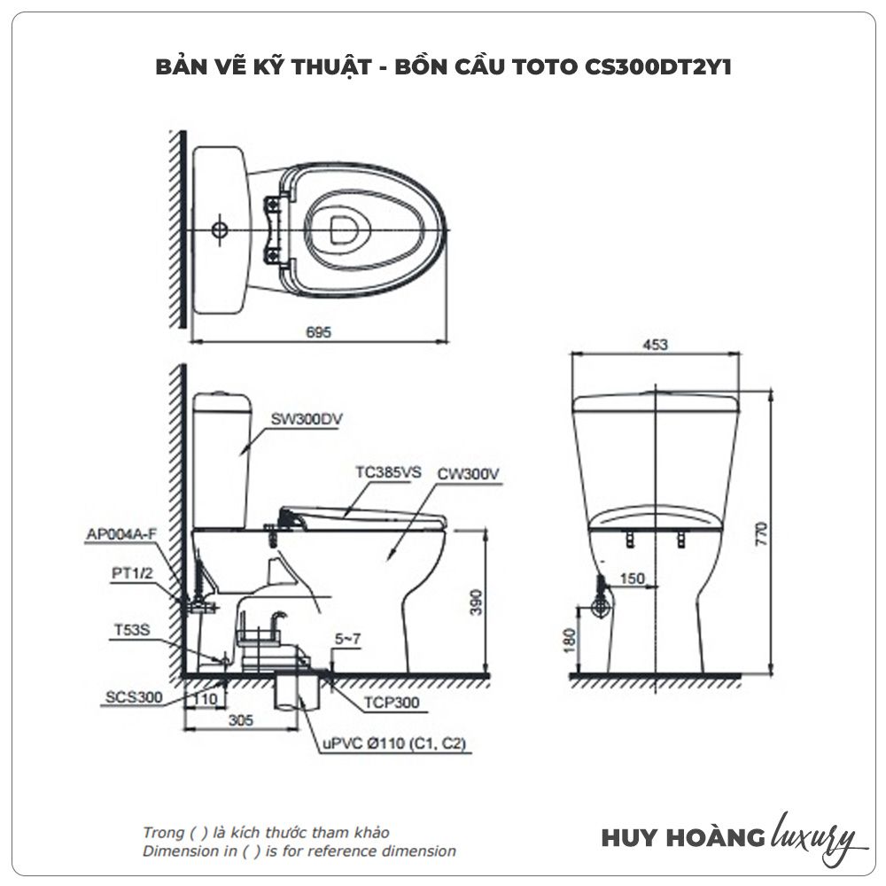 - Kết cấu gồm 3 bộ phận: Thân cầu C300Y1, két nước S300D, nắp bồn cầu TC393VS