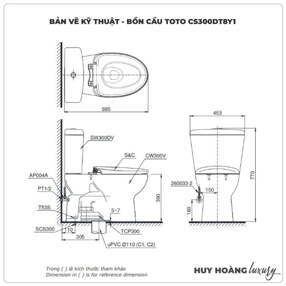 | Kết cấu | Thân cầu: C300Y1 Két nước: S300D Nắp bồn cầu: TC600VS |