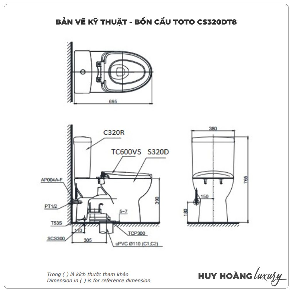 | Kết cấu | Thân cầu: C320R Két nước: S320D Nắp bồn cầu: TC600VS |