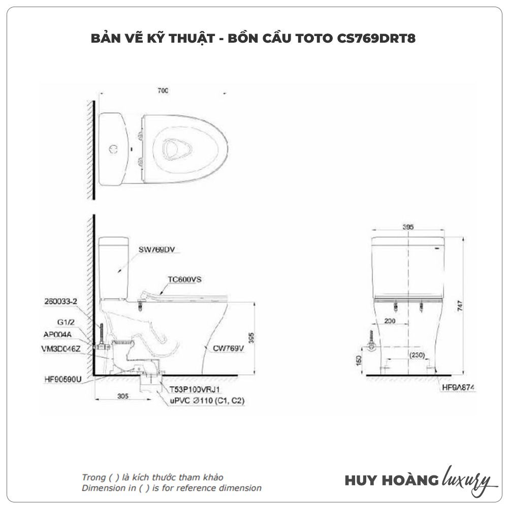 | Kết cấu | Thân cầu: C769 Két nước: S769DR Nắp bồn cầu: TC600VS |