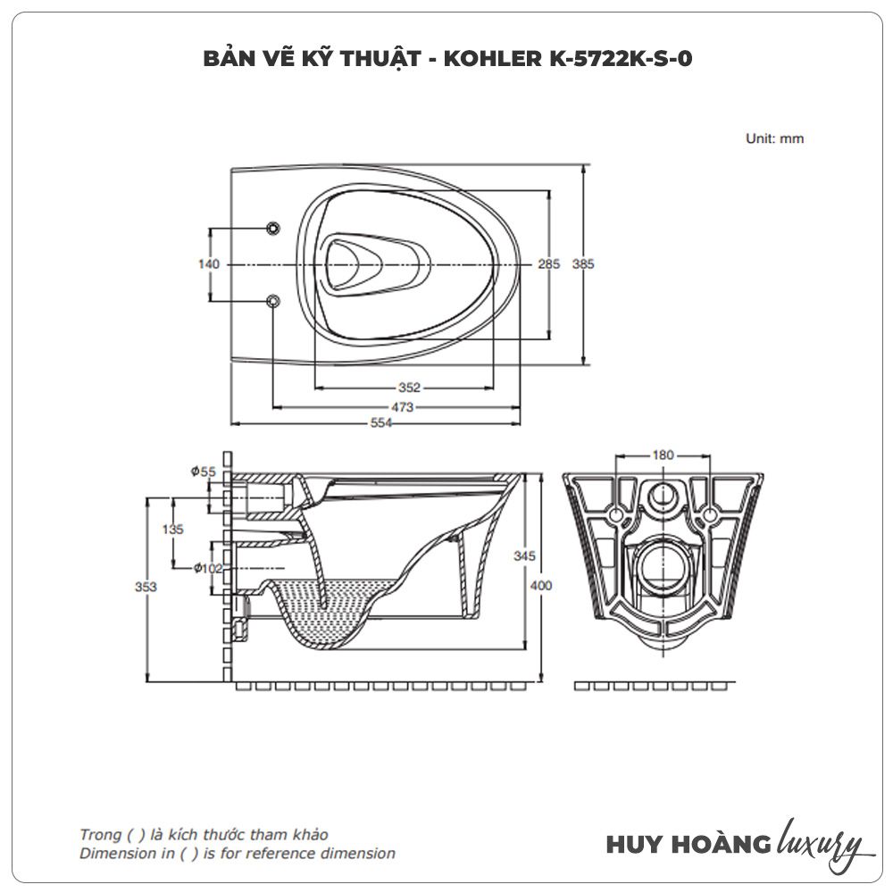 Thông tin sản phẩm: Bồn cầu treo tường KOHLER K-5722K-S-0