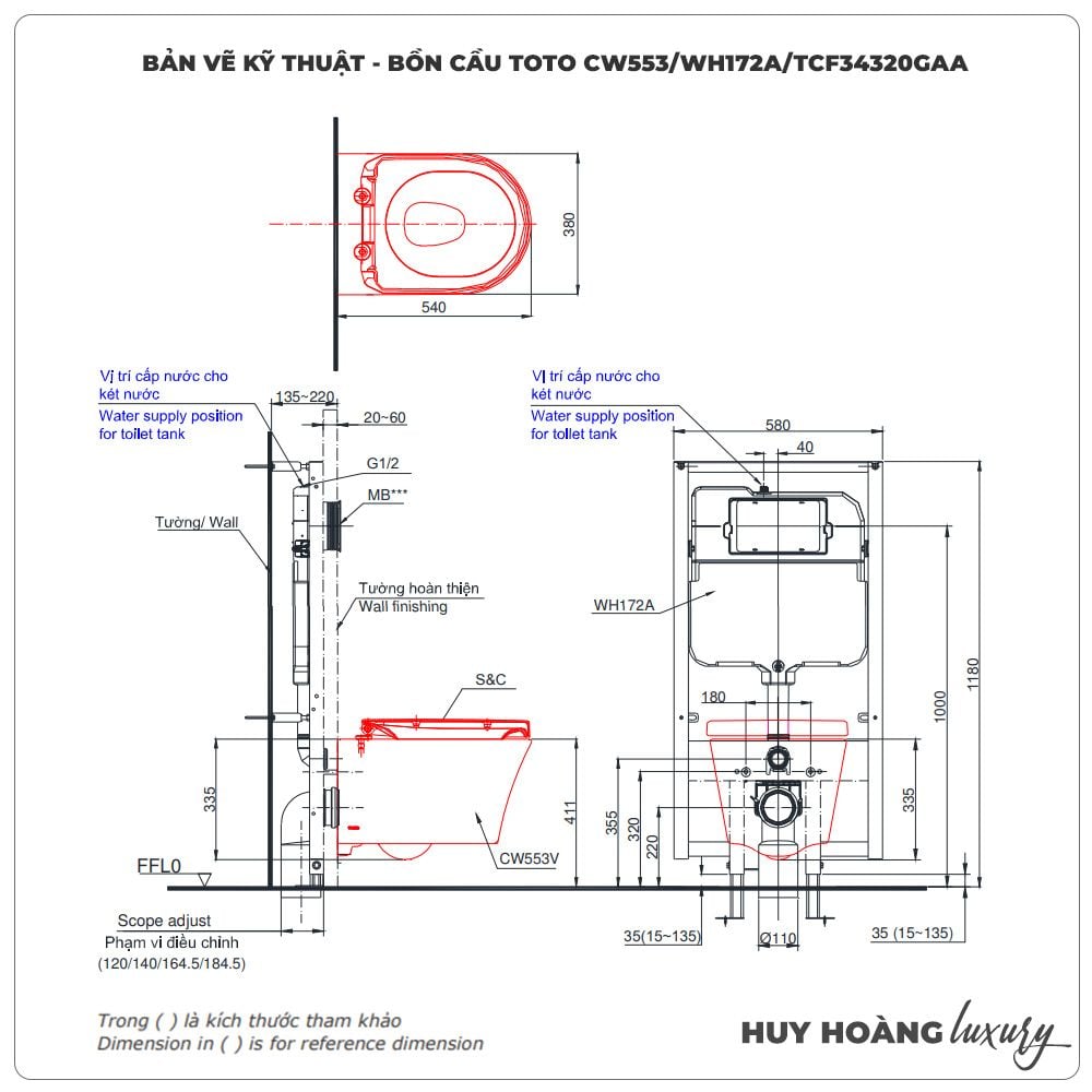 | Kết cấu | Thân cầu: CW553 Nắp bồn cầu thông minh: TCF34320GAA Két nước âm tường: WH172A Mặt nạ xả nhấn: MB170P |
