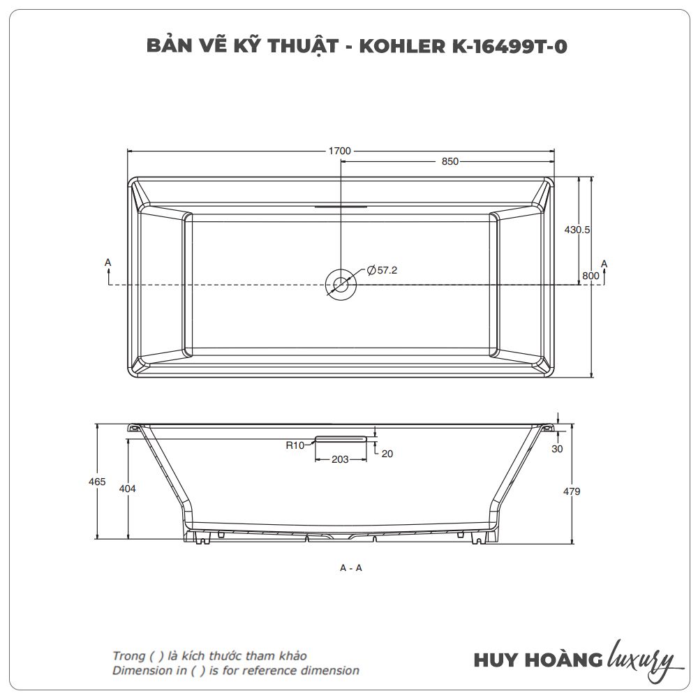 | Kích thước | 1700L x 800W x 465H mm | |