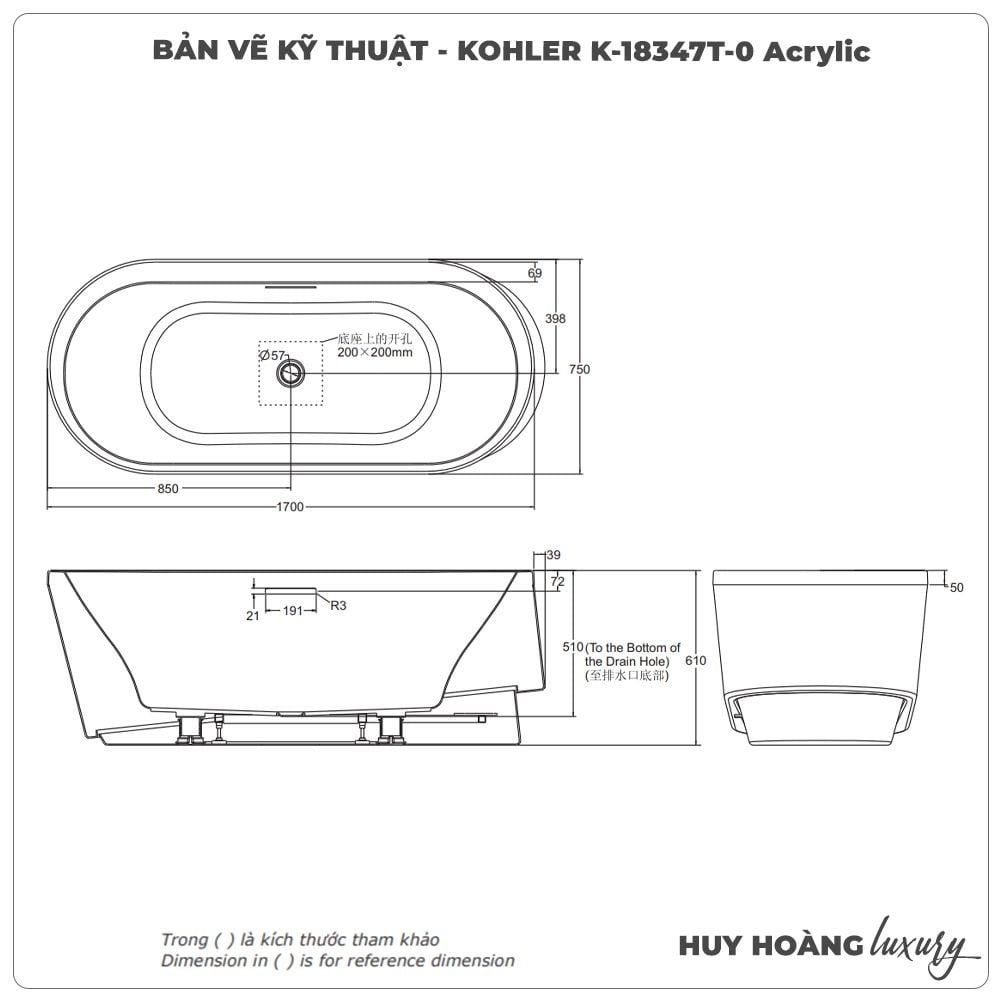 Thông số sản phẩm Bồn tắm KOHLER K-18347T-0 Acrylic