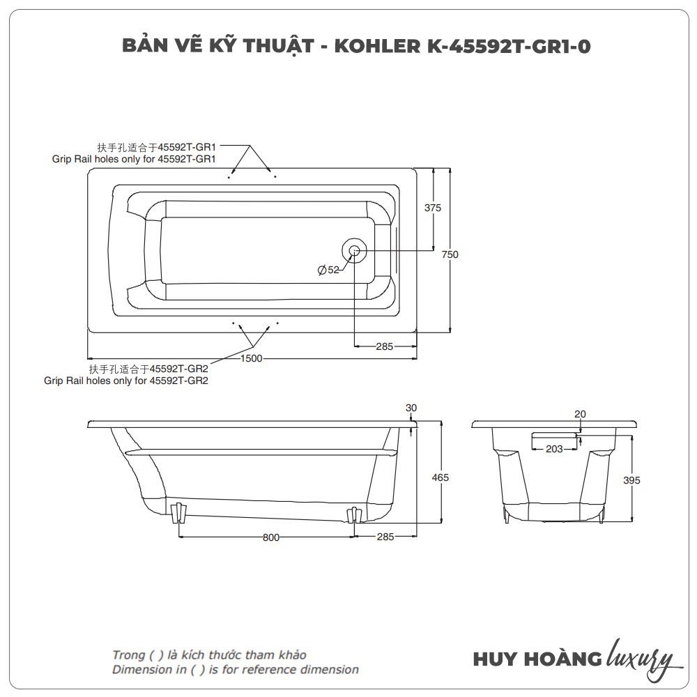 Thông số sản phẩm Bồn tắm xây KOHLER K-45592T-GR1-0