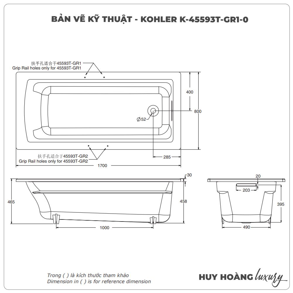 Thông số sản phẩm Bồn tắm xây KOHLER K-45593T-GR1-0
