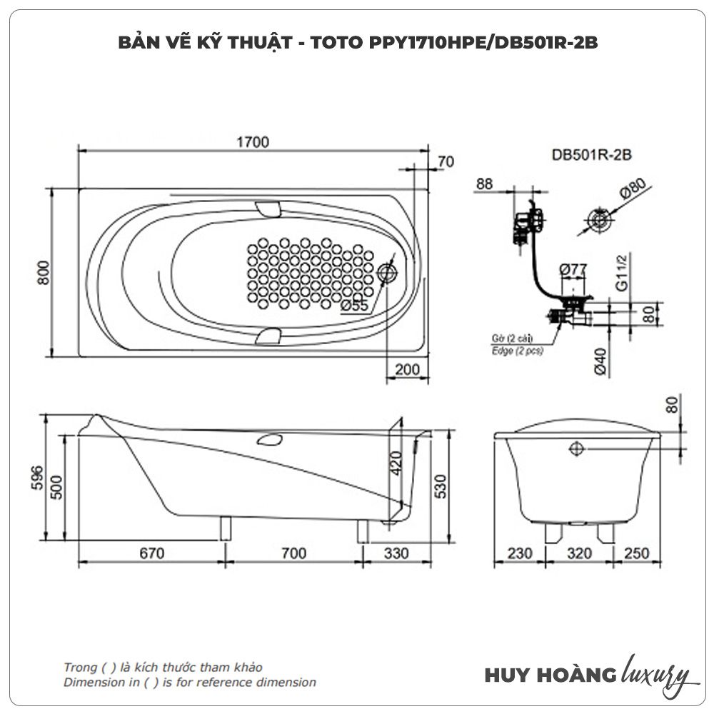 - Đã bao gồm bộ xả: Thoát ngang (DB503R-2B) - Thoát thẳng (DB503R-3A)