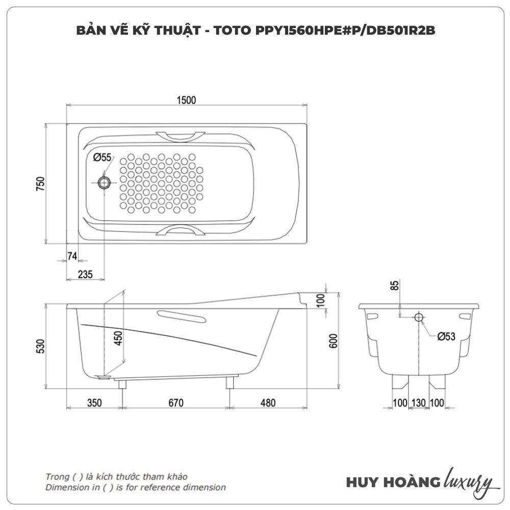 Bồn tắm xây TOTO PPY1560HPE#P/DB501R2B (1.5M)