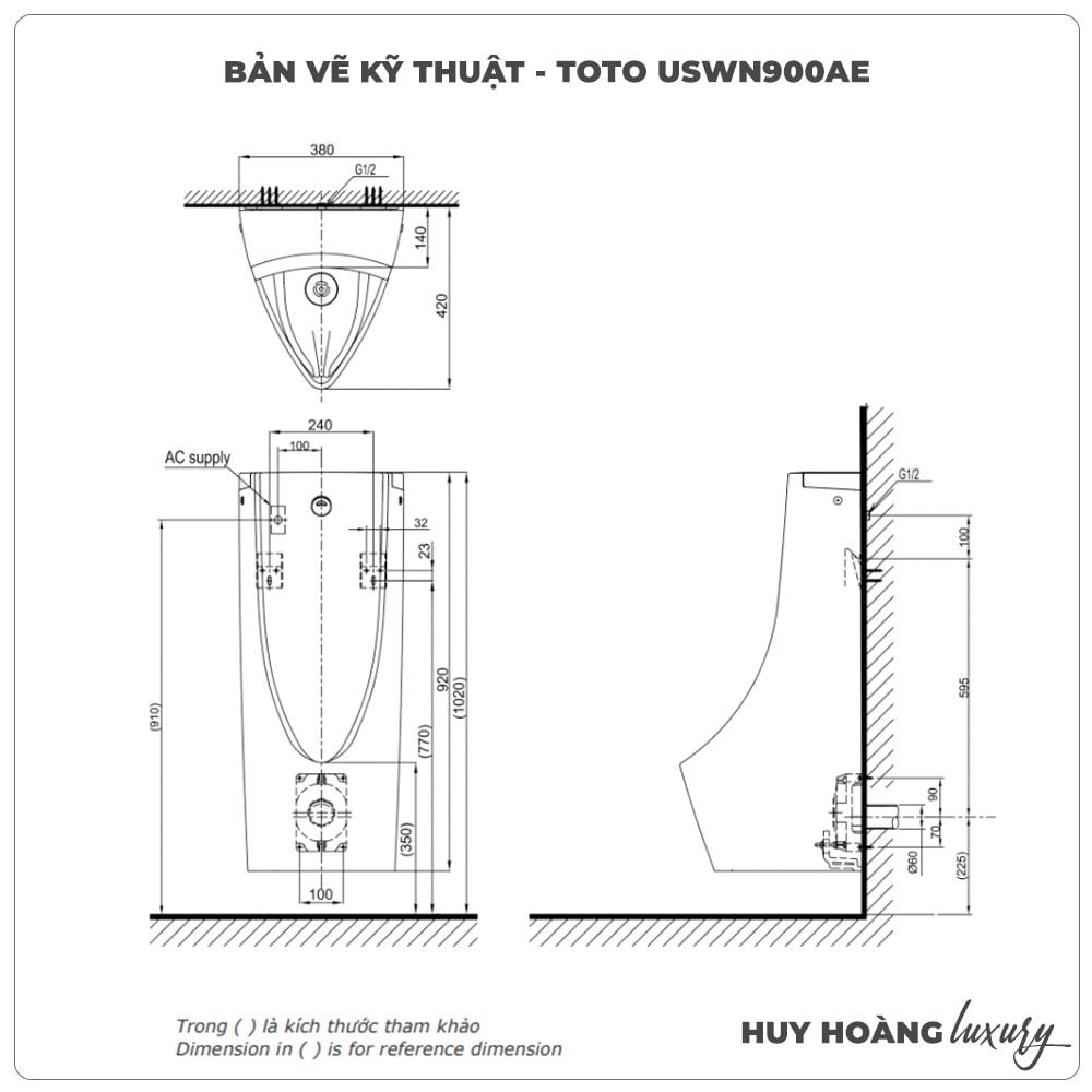 Kích thước tiêu chuẩn: Kích thước của bồn tiểu nam TOTO USWN900AE/HHF90603 là 380 x 50 x 380mm (rộng x cao x sâu). Đây là kích thước tiêu chuẩn của một chiếc bồn tiểu vừa giúp tiết kiệm không gian nhà vệ sinh, vừa mang lại cảm giác thoải mái cho người dùng.