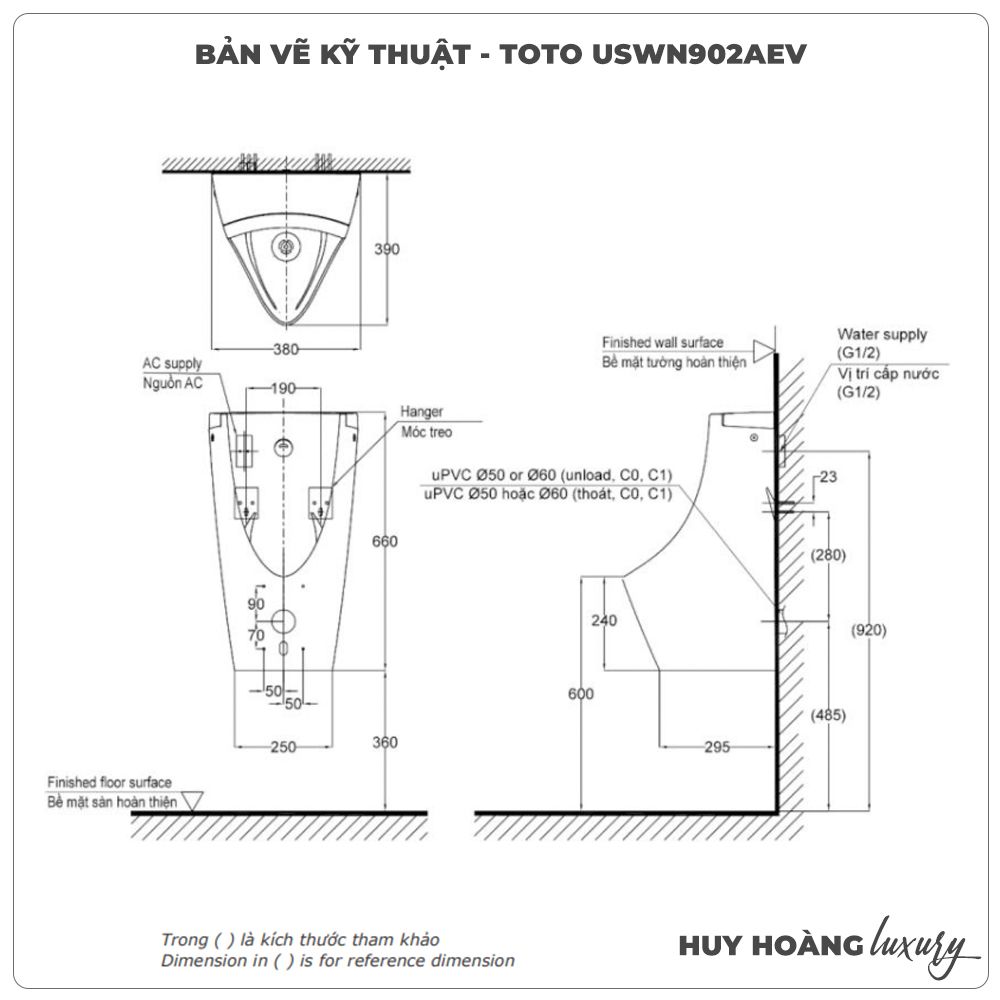 Thông số kỹ thuật: Bồn tiểu nam TOTO USWN902AEV