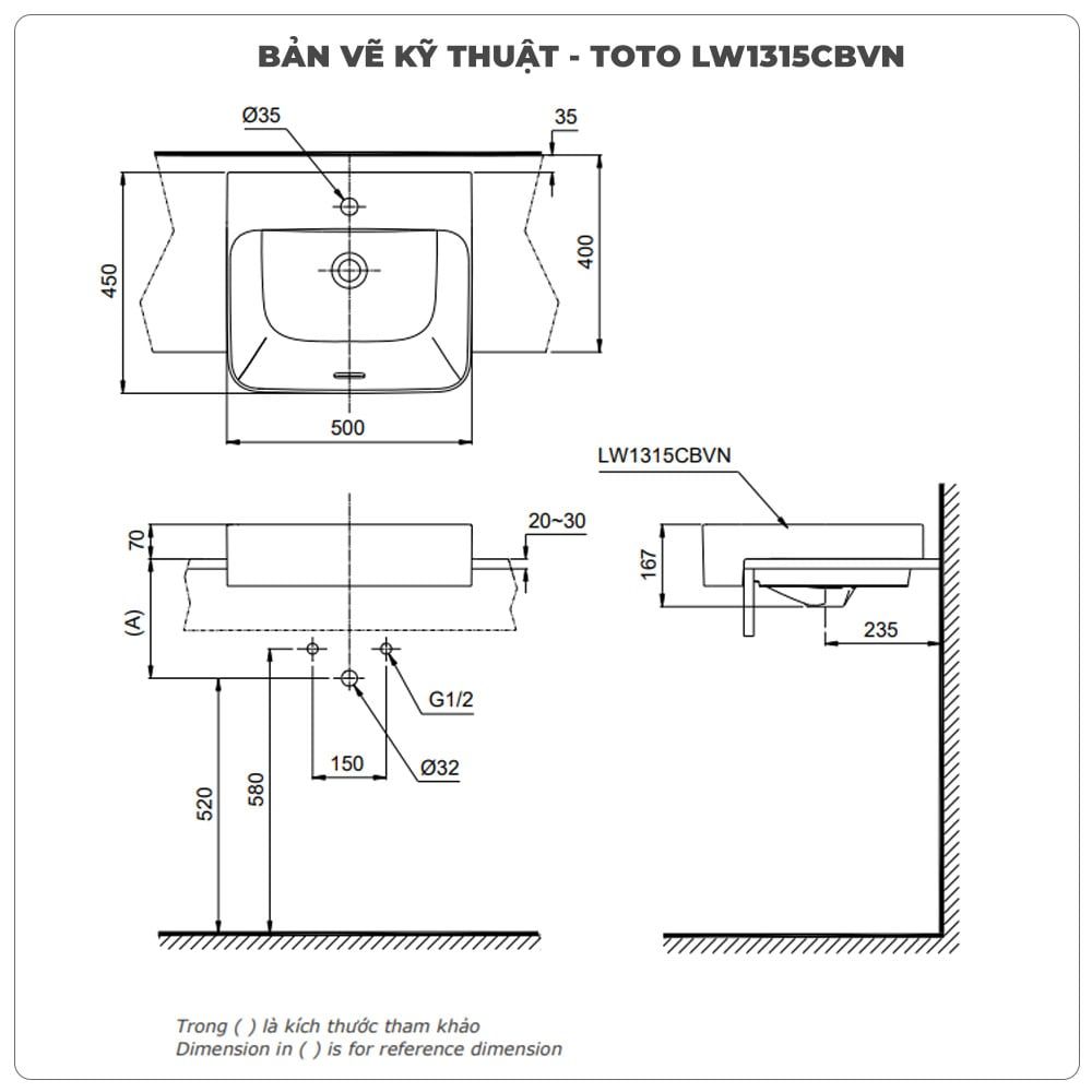 Thông tin sản phẩm: Lavabo bán âm TOTO LW1315CBVN