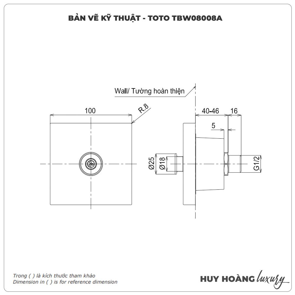 Thông tin sản phẩm: Đầu phun sen âm tường TOTO TBW08008A