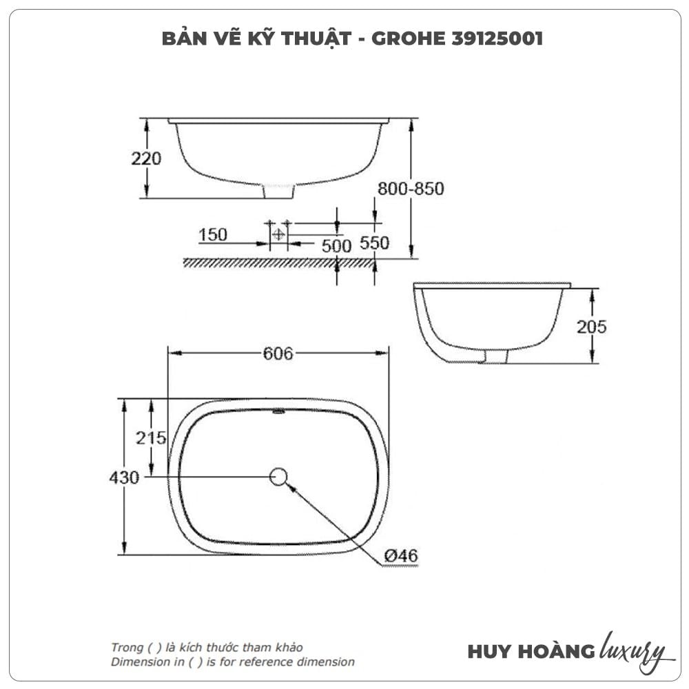 Thông số sản phẩm Lavabo âm bàn GROHE 39125001