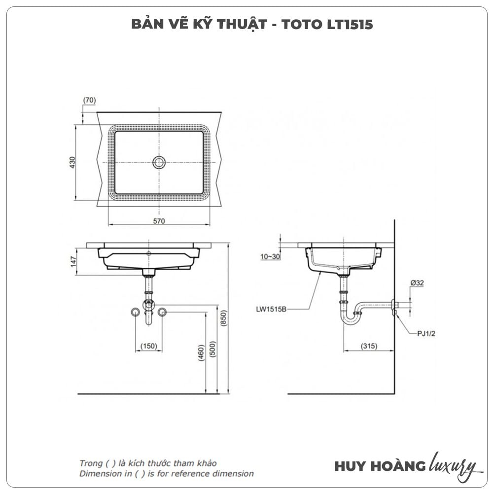 Thông số sản phẩm Lavabo âm bàn TOTO LT1515