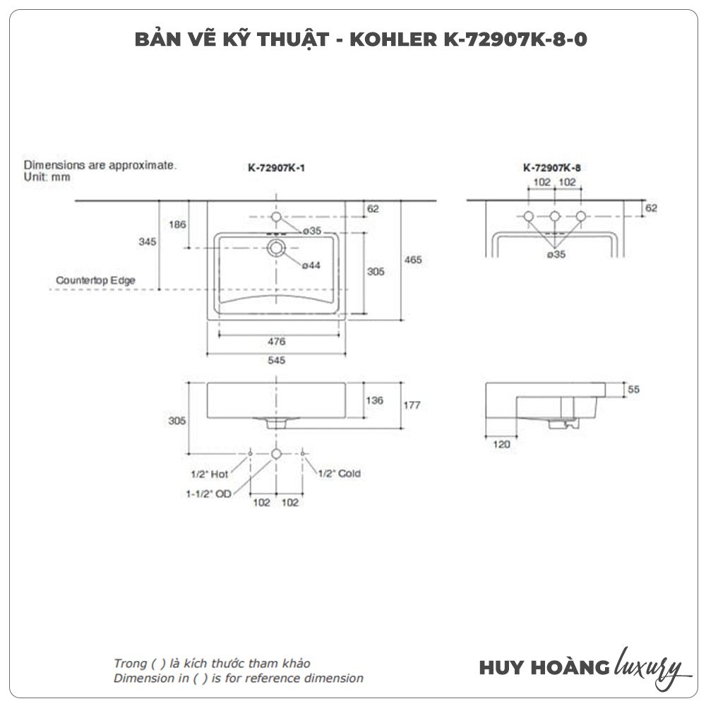 - Sản phẩm Lavabo bán âm LADENA KOHLER K-72907K-8-0 được nhập khẩu từ nhà máy Kohler Thái Lan.