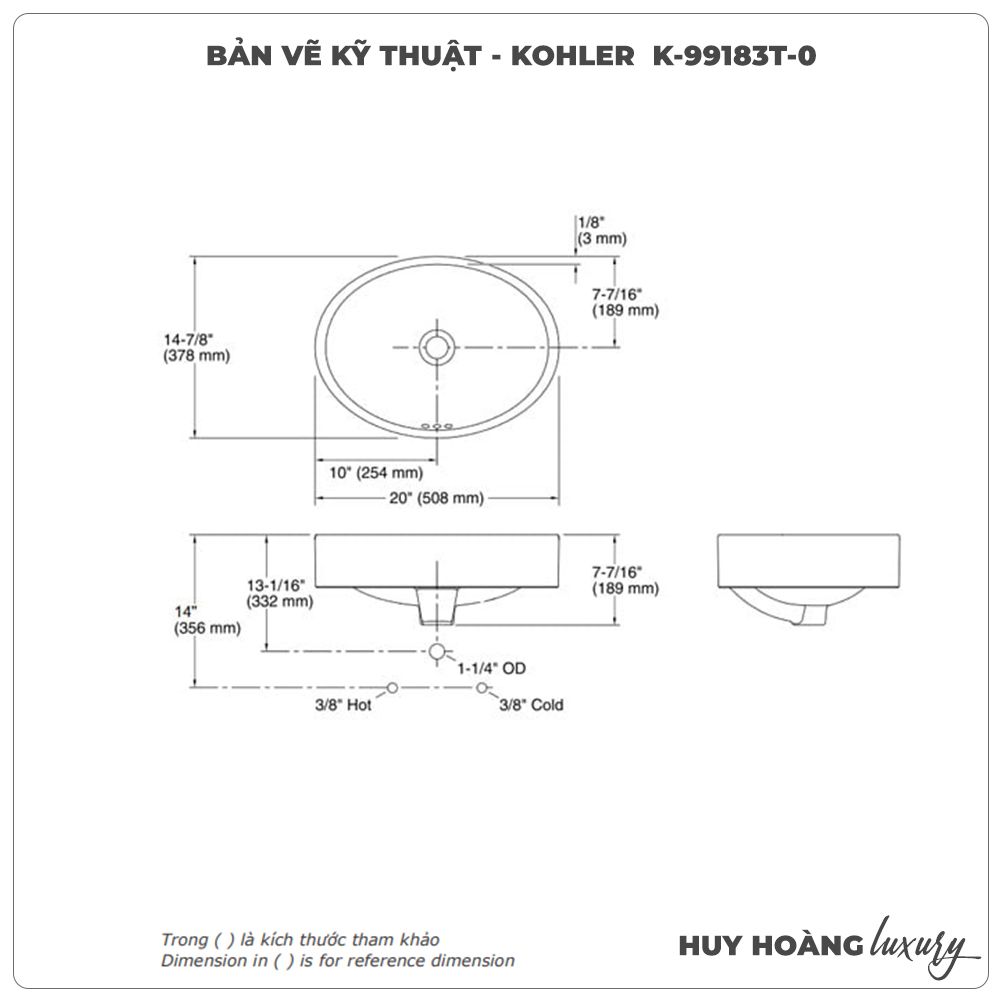 - Sản phẩm Lavabo đặt bàn CHALICE KOHLER K-99183T-0 được nhập khẩu từ nhà máy Kohler Thái Lan.