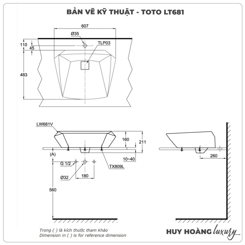 Thông số sản phẩm Chậu rửa mặt đặt bàn TOTO LT681