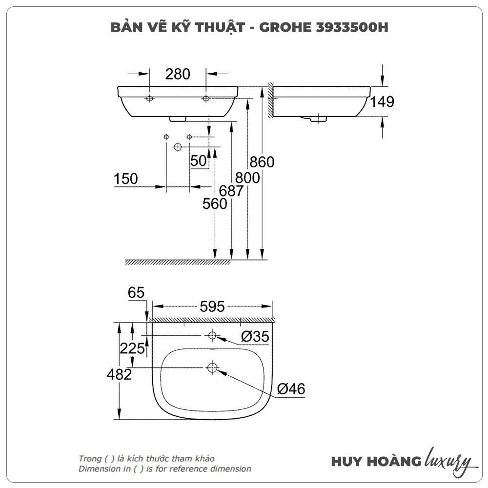 Thông số sản phẩm Lavabo treo tường GROHE 3933500H