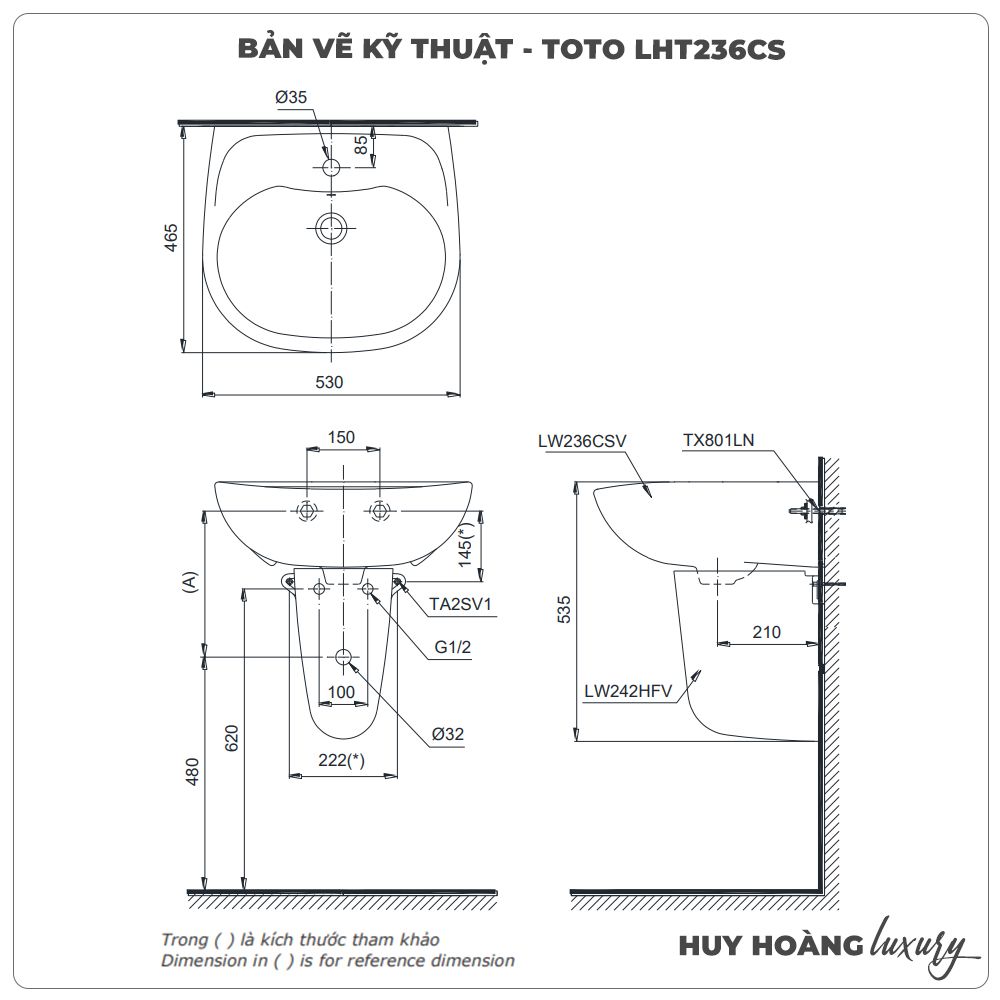 Thông số sản phẩm Lavabo treo tường TOTO LHT236CS