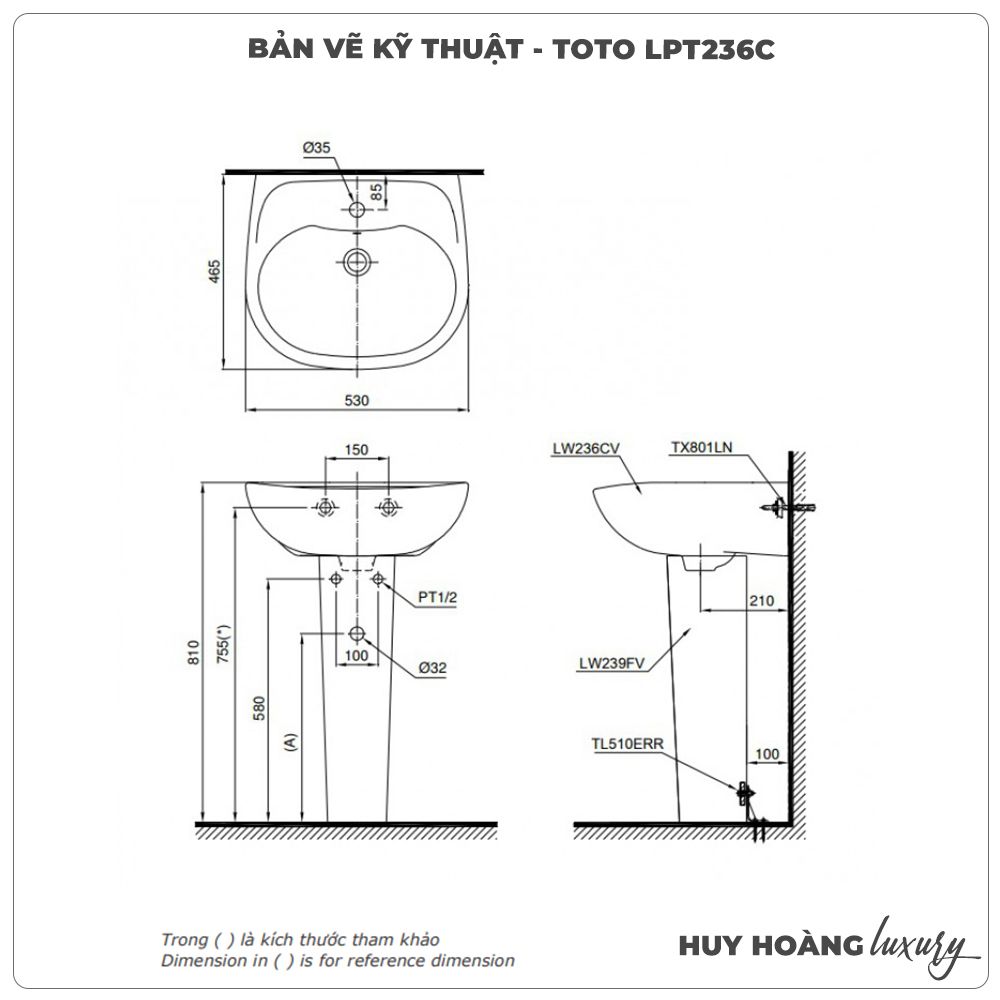 Thông số sản phẩm Lavabo treo tường TOTO LPT236C