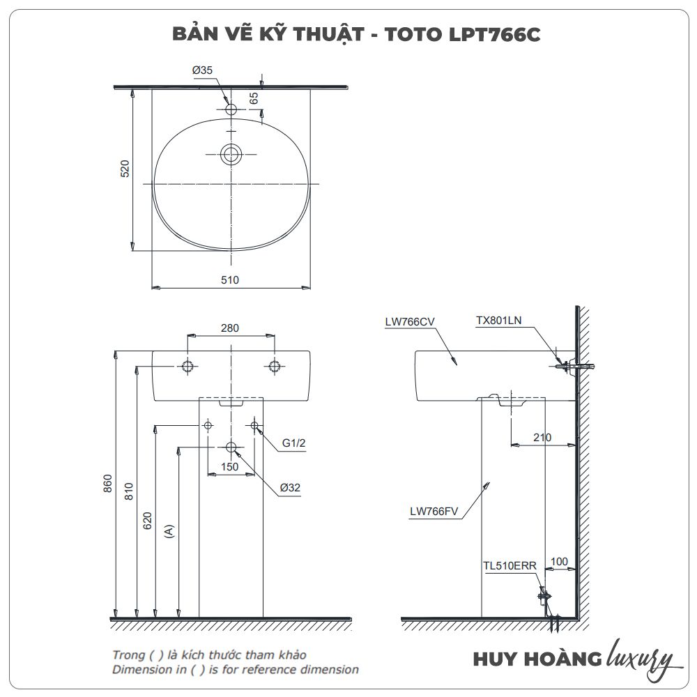 - Chân chậu dài: L766F