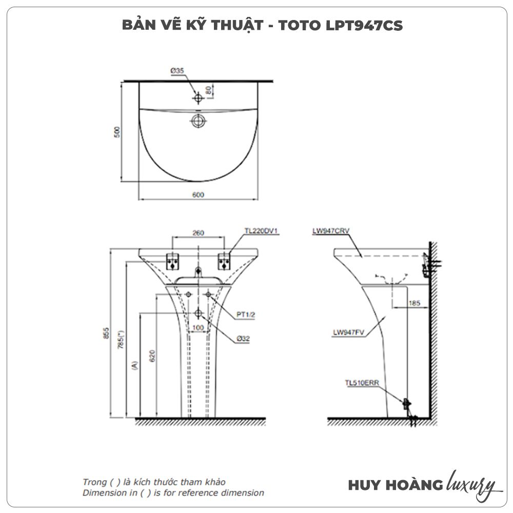 Thông số sản phẩm Lavabo treo tường TOTO LPT947CS
