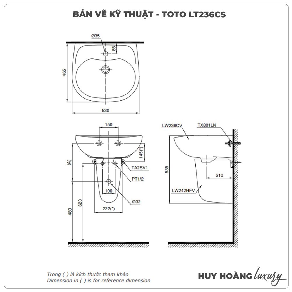 Thông số sản phẩm Lavabo treo tường TOTO LT236CS