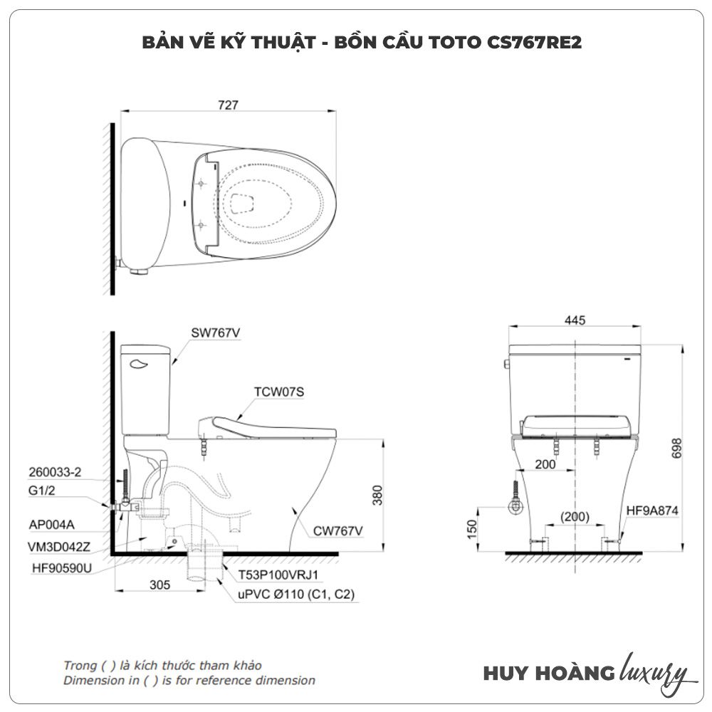 - Bồn cầu nắp rửa cơ TOTO CS767RE2 (Nắp TCW07S) được đóng gói hoàn thiện với tem dán chính hãng từ thương hiệu, phiếu bảo hành và phiếu thông tin;