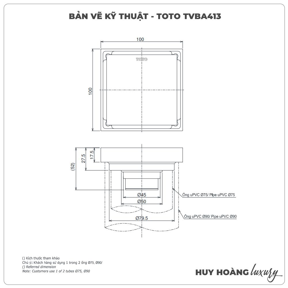 - Phễu thoát sàn TOTO TVBA413 được đóng gói hoàn thiện với tem dán chính hãng từ thương hiệu, phiếu bảo hành và phiếu thông tin;