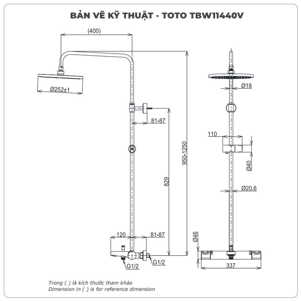 | Kích thước bát sen | 252 mm |
