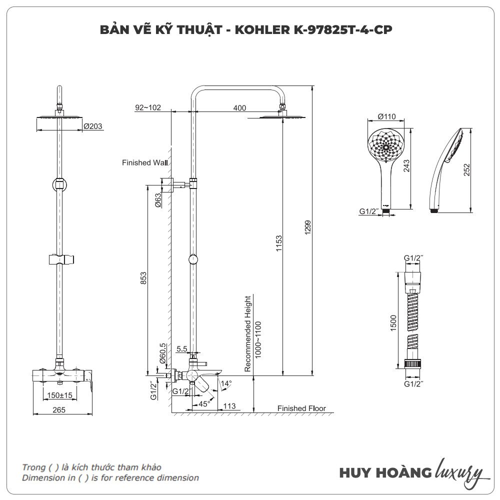 Thông tin sản phẩm: Sen cây tắm nóng lạnh KOHLER K-97825T-4-CP