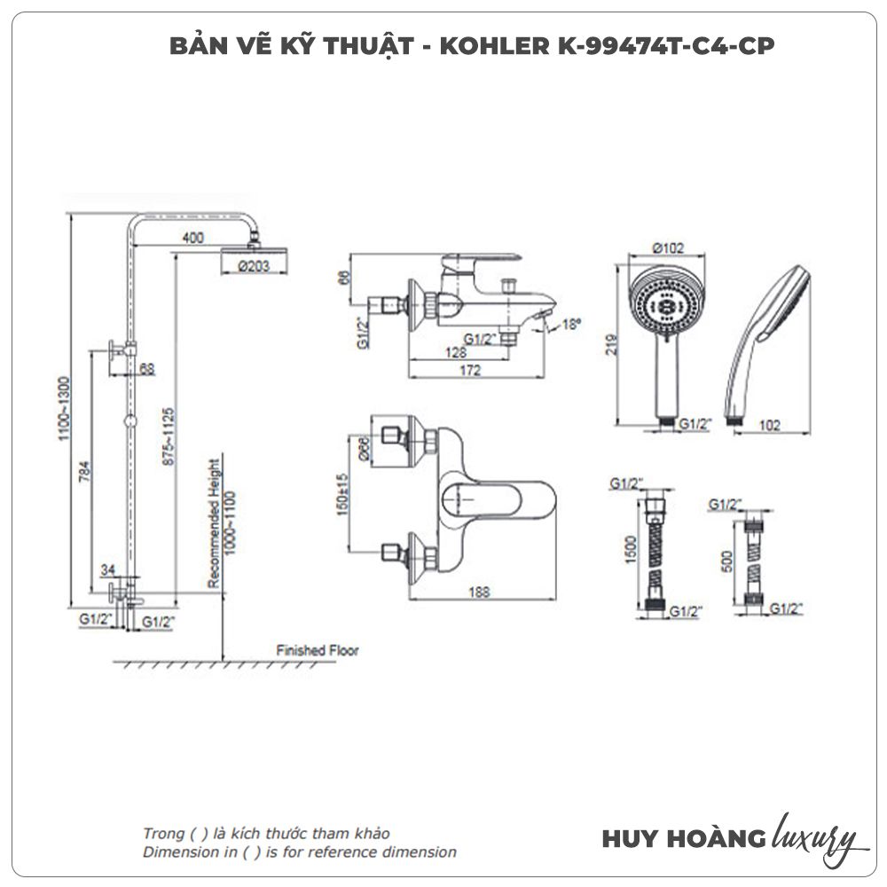 Thông tin sản phẩm: Sen cây tắm nóng lạnh Kohler K-99474T-C4-CP