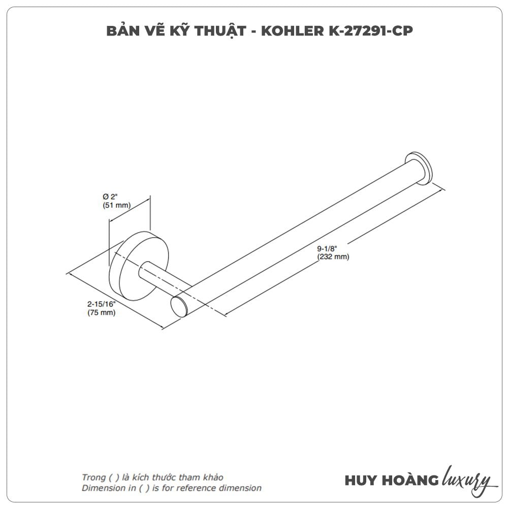 - Thanh treo vắt khăn KOHLER K-27291-CP được đóng gói hoàn thiện với tem dán chính hãng từ thương hiệu, phiếu bảo hành và phiếu thông tin.