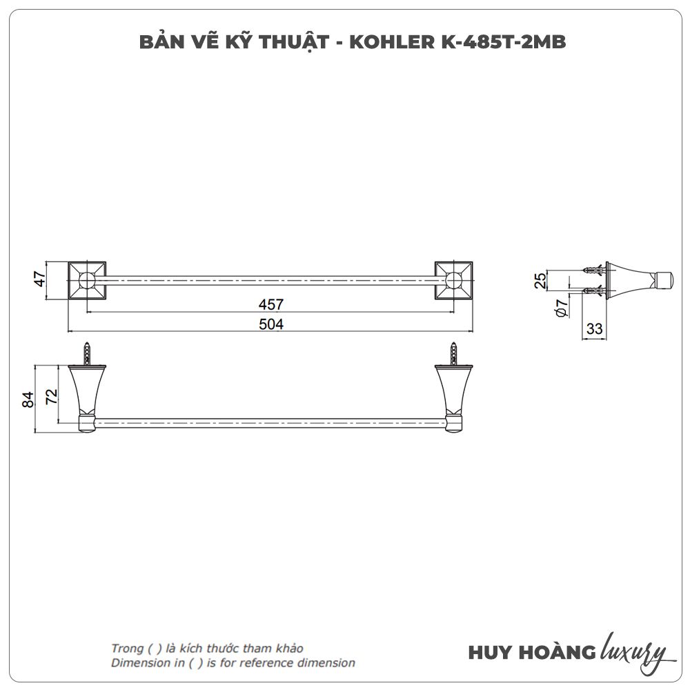 - Thanh treo vắt khăn KOHLER K-485T-2MB được đóng gói hoàn thiện với tem dán chính hãng từ thương hiệu, phiếu bảo hành và phiếu thông tin.
