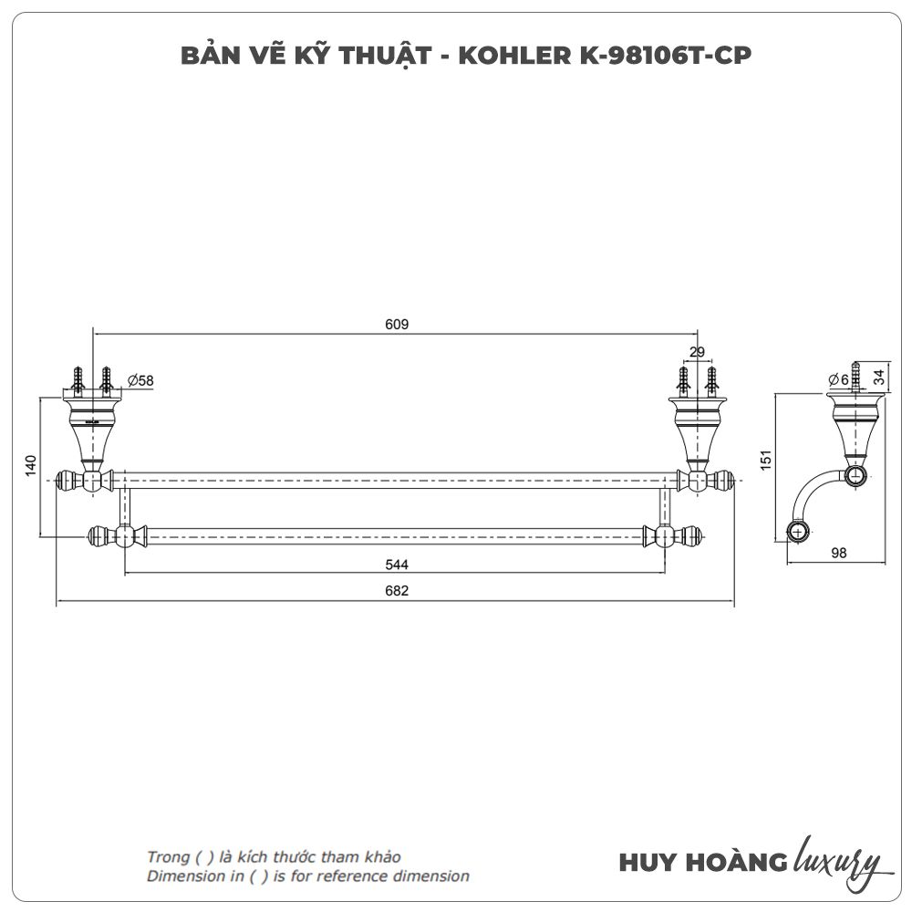 - Thanh treo vắt khăn KOHLER K-98106T-CP được đóng gói hoàn thiện với tem dán chính hãng từ thương hiệu, phiếu bảo hành và phiếu thông tin.