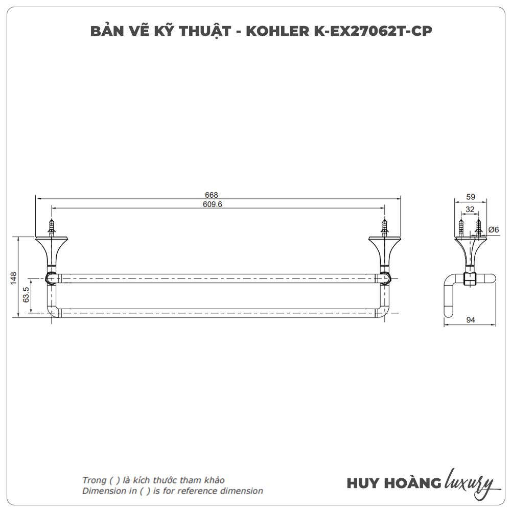 Thông tin sản phẩm: Thanh treo vắt khăn KOHLER K-EX27062T-CP
