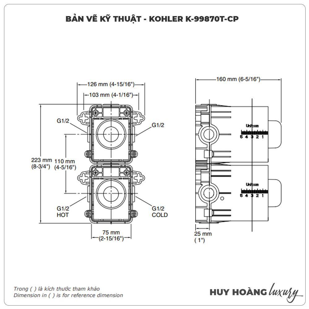 Van 3 chiều cảm biến nhiệt KOHLER K-99870T-CP âm tường