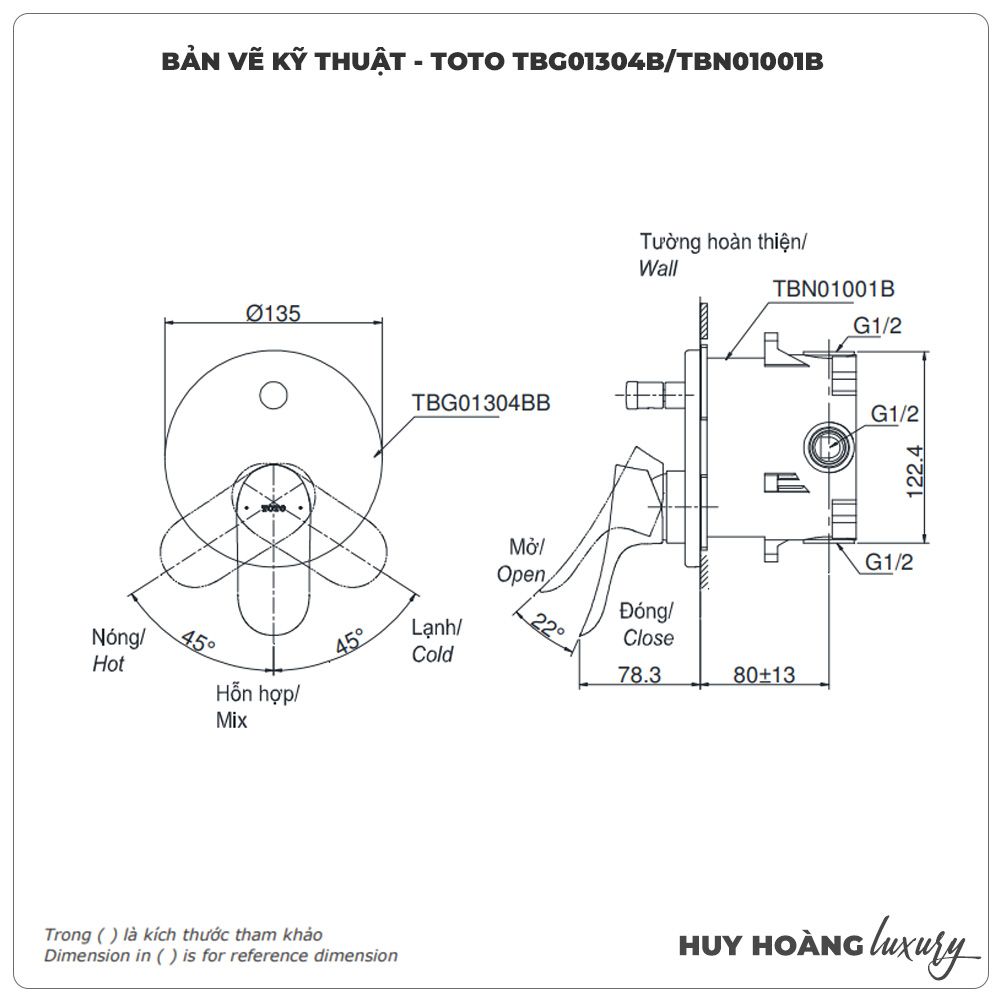 | Kết cấu | TBG01304BA: Van điều chỉnh nóng lạnh TBN01001B: Phụ kiện âm tường |