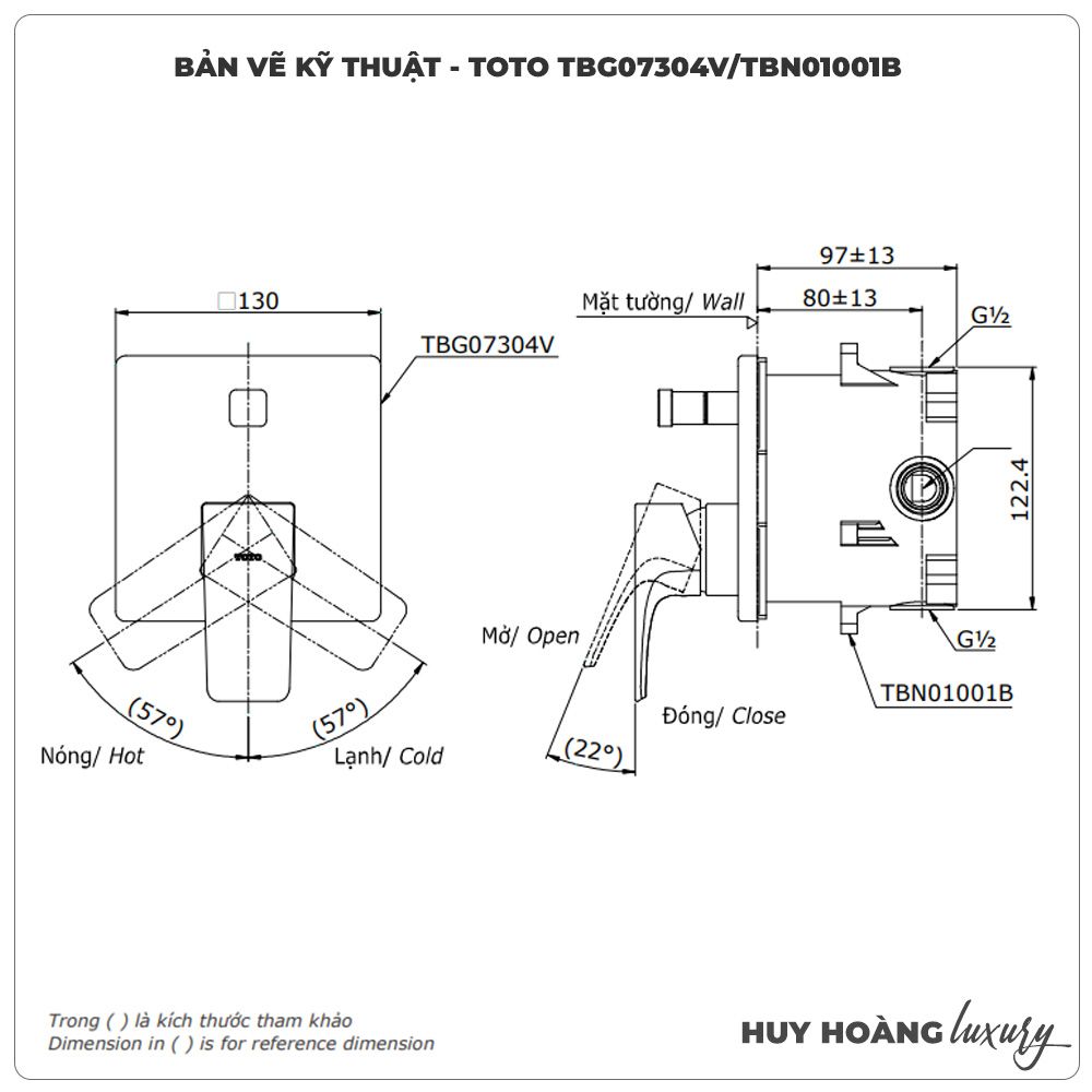 | Kết cấu | TBG07304VA: Van điều chỉnh nóng lạnh TBN01001B: Phụ kiện âm tường |