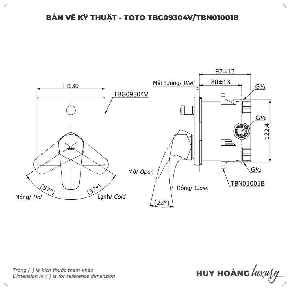 | Kết cấu | TBG09304VA: Van điều chỉnh nóng lạnh TBN01001B: Phụ kiện âm tường |