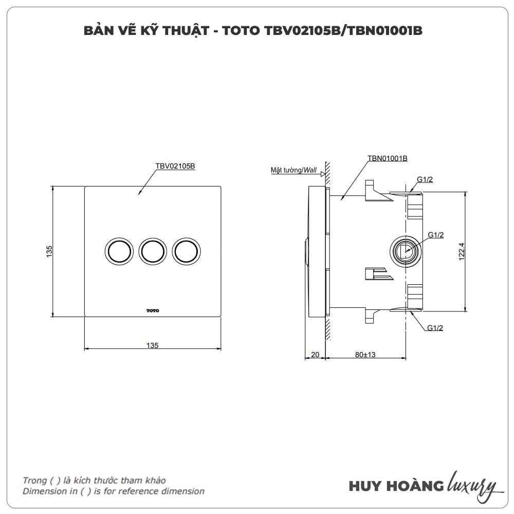 | Kết cấu | TBV02105B: Van chuyển hướng TBN01001B: Phụ kiện âm tường |